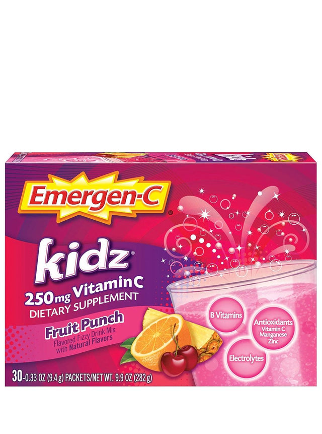 - Contains 30 single-serving packs (0.33 oz. Each) of Emergen-C Kidz Dietary Supplement at Fruit Punch taste